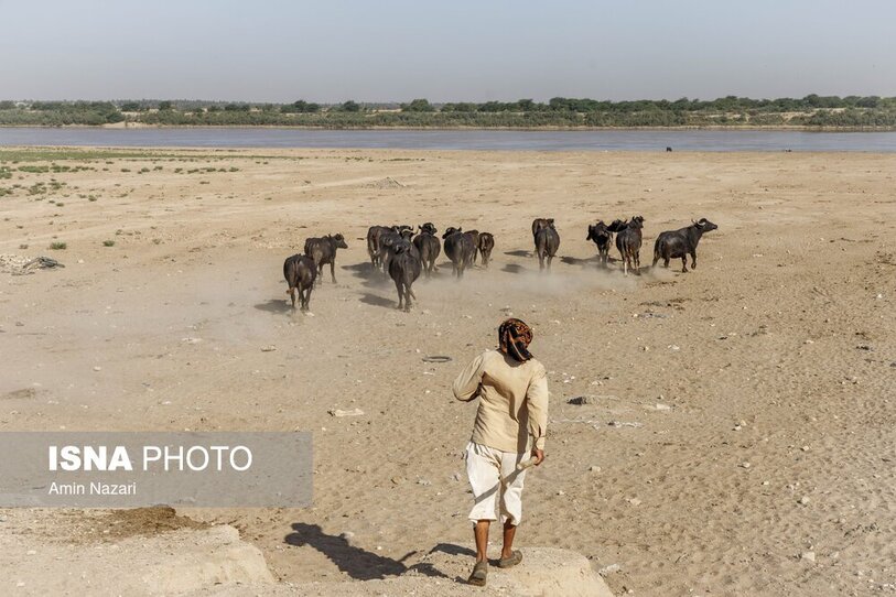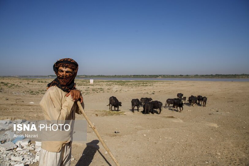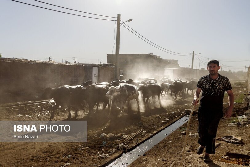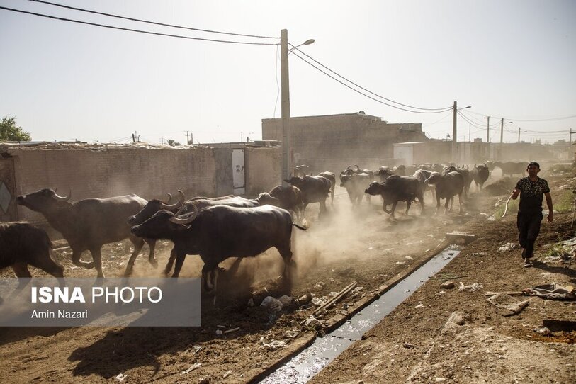 گاومیش‌آباد نامش را از کسب و کار قدیمی مردم این محله دارد، پرورش گاومیش و گاومیش‌داری . بیشتر مردم این محله بزرگ، در خانه‌های خود آغل‌هایی دارند و به کار دامداری مشغول هستند. گاومیش‌آباد در حاشیه ساحل شرقی رودخانه کارون در جنوب اهواز بین پل پنجم و پل ششم و روبه‌ روی منطقه گلستان اهواز واقع است. مجاورت با آب لازمه گاومیش‌داری است و اهالی هر روز گاومیش‌هایشان را برای آب‌تنی به رودخانه کارون می‌برند. گاومیش‌آباد محله‌ای حاشیه‌ای در دل شهر اهواز است. این محله تا چند سال پیش بخشی از منطقه ۸ شهرداری اهواز بود اما با جدا شدن منطقه کوت عبدالله از اهواز و ایجاد شهرستان کارون، اکنون در این شهرستان جدید واقع است.